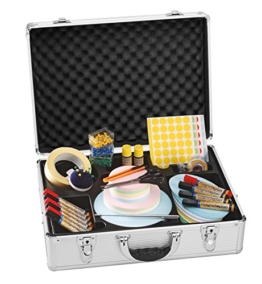Was wäre der moderne Unterricht ohne eine professionelle Moderation und eine visuelle Präsentation, um das Gelernte zusammenzufassen und zu vertiefen. Im kompakten Moderationskoffer ist alles vorhanden, was man für eine gute Präsentation benötigt. Ein mobiles Flipchart und farbige Flipchart-Marker können überall eingesetzt werden. Wenn die Blätter verbraucht sind, wird einfach ein neuer Flipchart-Block aufgelegt. Moderationstafeln, an denen sich bunte Moderations-Karten oder Moderations-Wolken mit Pinnwandnadeln feststecken lassen, finden im Unterricht vielseitige Verwendung. Moderations-Klebepunkte und Wertungssymbole runden das vorgestellte Angebot für eine gelungene Visualisierung ab.